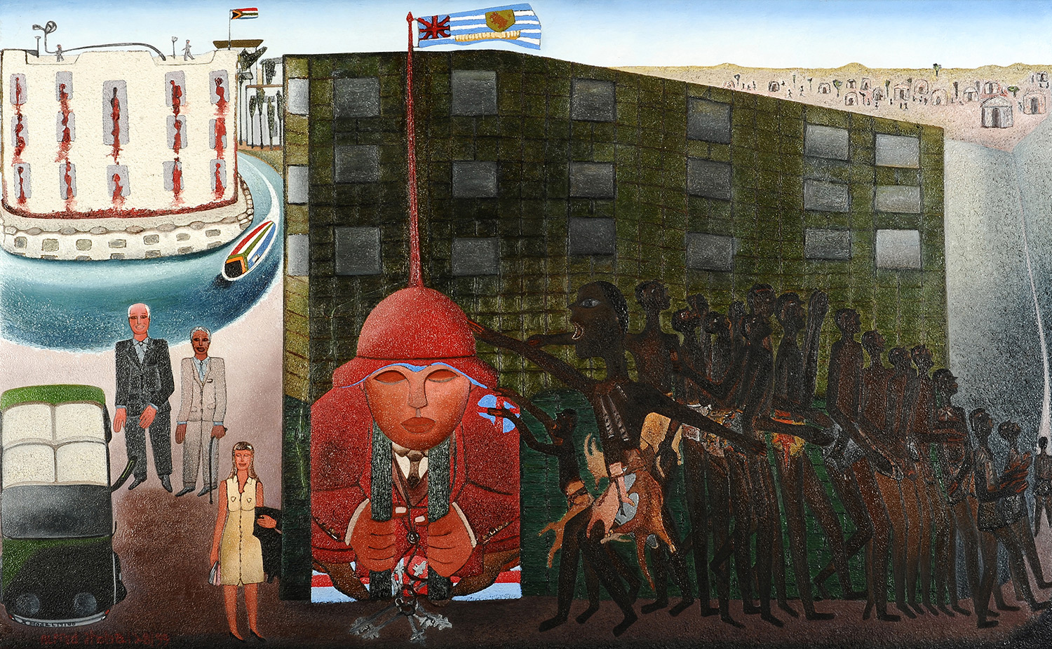 Deeply concerned with the disenfranchisement of black South Africans, both during and post-apartheid, Thoba’s work explores contemporary events and moments of historical significance, while also portraying the private and political aspects of sex, marriage and love. Frequent subjects include the effects of urbanisation of people’s lives, including children who have turned to stealing, prostitution and violence to survive on the streets. Human relationships and personal suffering also feature, as do contemporary events, as recorded in newspaper articles.