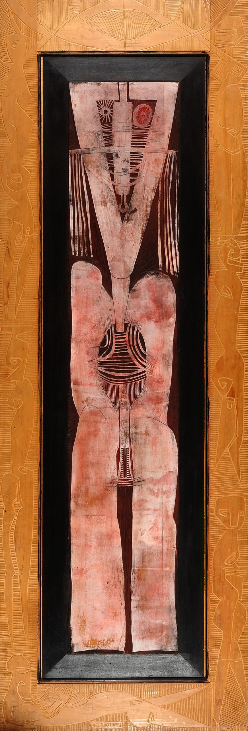 Cecil Skotnes was born in East London in the Eastern Cape, the son of missionaries. He is known especially for his painted and incised wooden panels, striking woodblock prints, public murals, tapestries and sculpture. He pioneered a way of producing art that used earth pigments and indigenous wood to construct visual stories about the African past.