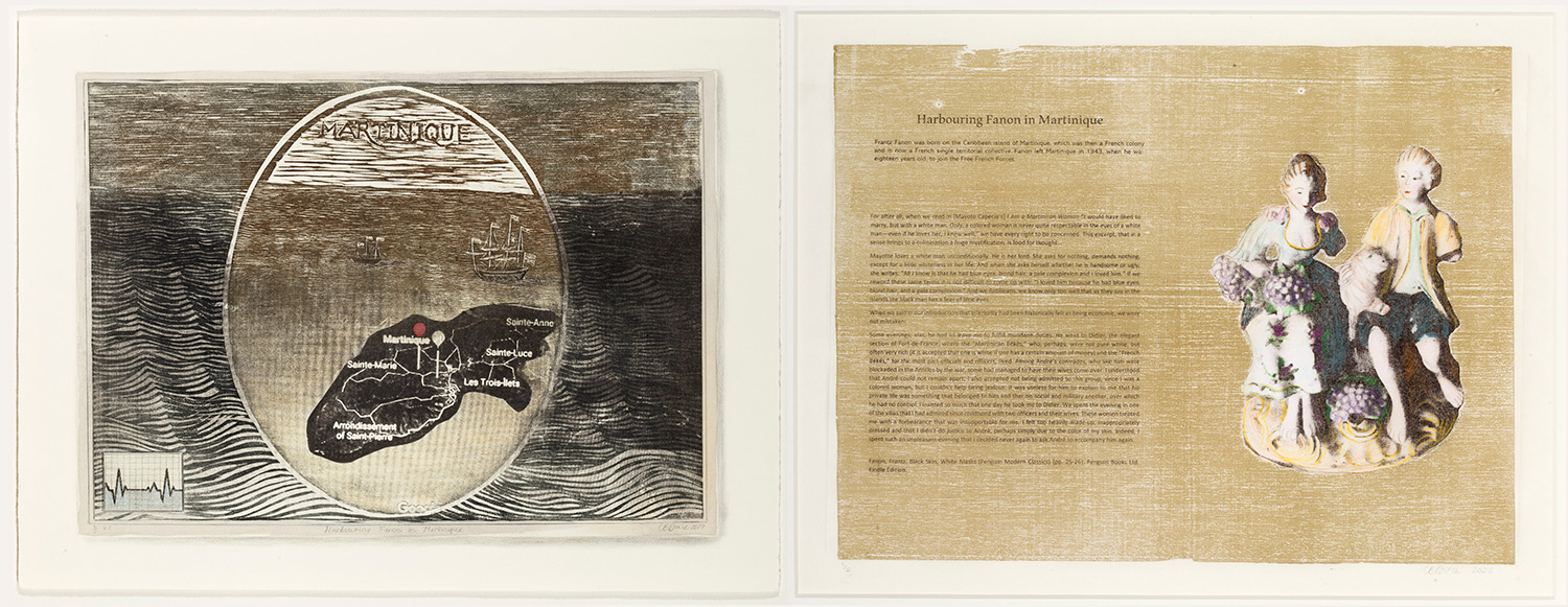 Based in Makhanda in the Eastern Cape, where she is a senior lecturer at Rhodes University, Dixie is a multimedia artist who specialises in printmaking, and has produced numerous large-scale installations. Her work challenges the ways gender roles have been historically conditioned by society, myths and image-making. The manifestation of the colonial history that haunts the town of Makhanda in South Africa, has compelled her preoccupation with Europe’s legacy in Africa. Her practice and aesthetic rely on archival imagery and in-depth research.