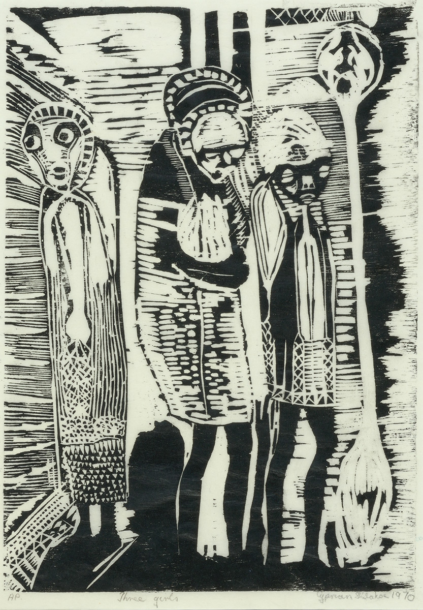 The influence of Otto Lundbohm, Shilakoe’s Swedish teacher at Rorke’s Drift, might be traced in the technique of this boldly expressive, rough-hewn woodcut depicting three girls and a strange spoon or oar-like shape… Continue Reading