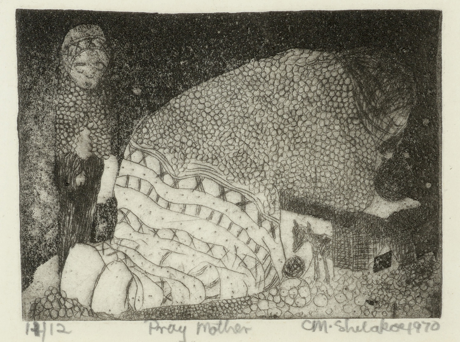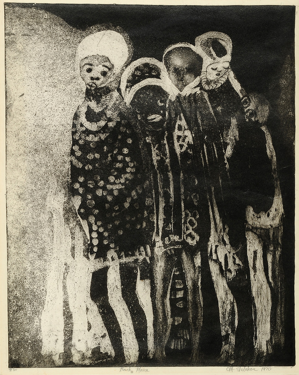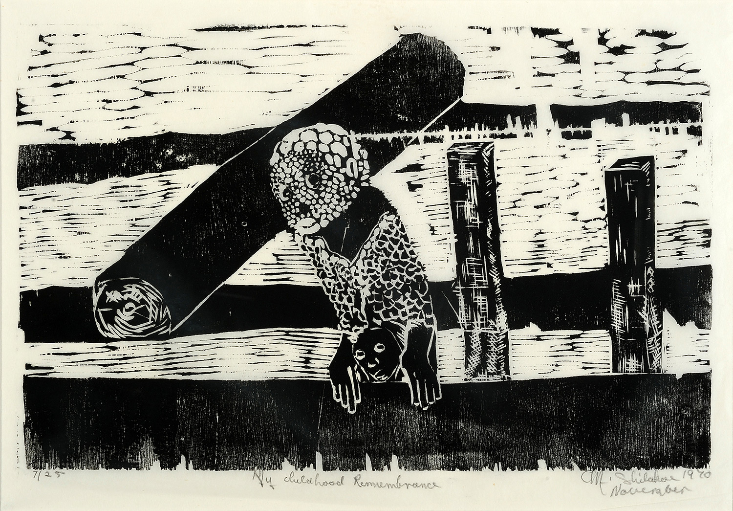 Shilakoe studied under the mentorship of Azaria Mbatha at the Rorke’s Drift Art Centre (1968–9) and was the first student to excel in intaglio printmaking. Embracing themes of loss, longing, and the mystical, his emotionally charged and otherworldly imagery grapples with the fragmentation of family and community life.