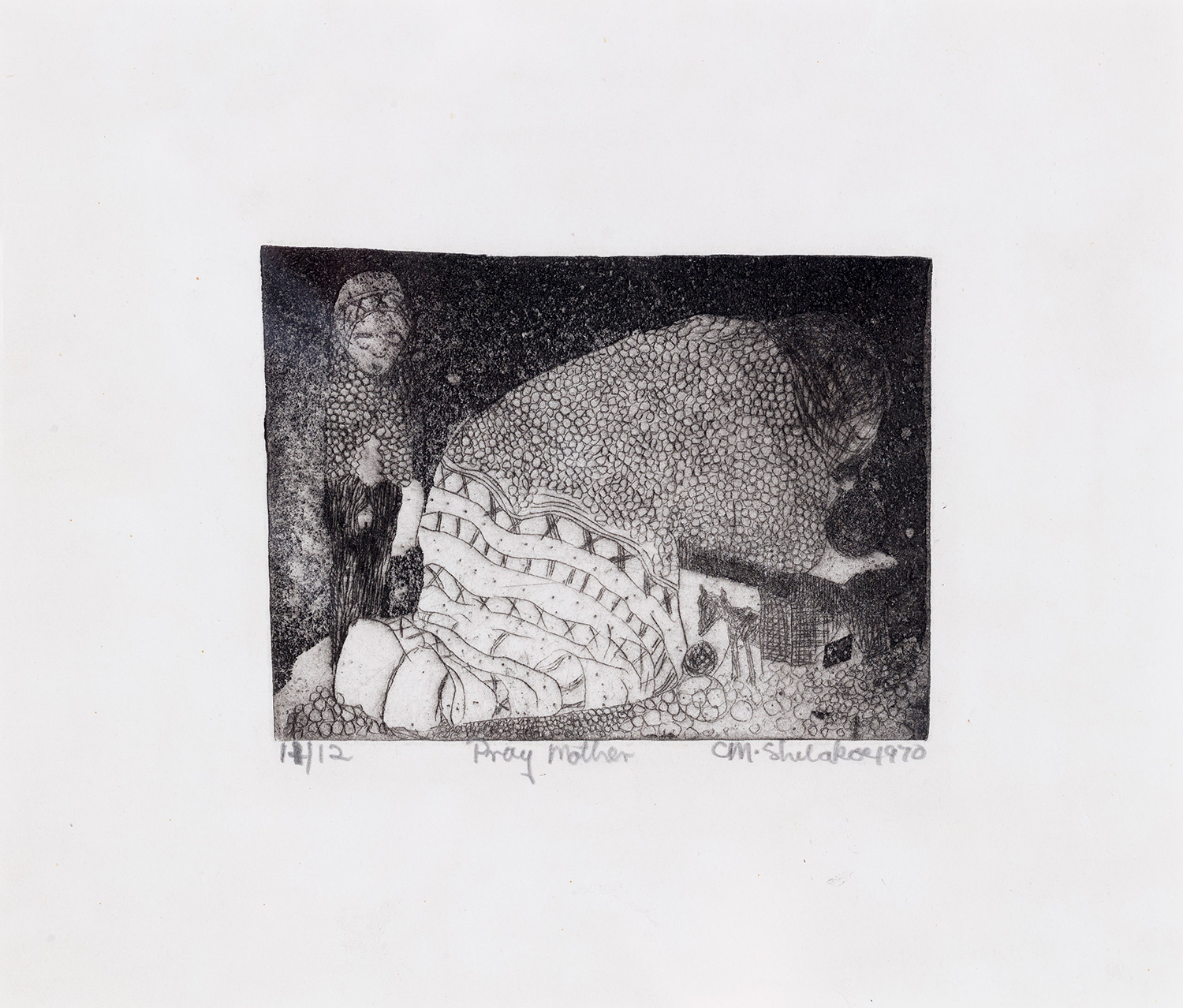 ‘The atmospheric, dream-like effect in Shilakoe’s work is achieved by his masterly use of aquatint. Instead of using it in large, tonal areas, he preferred to apply the aquatint selectively, resulting in the rich, lustrous quality of his prints,’ writes Joe Dolby.