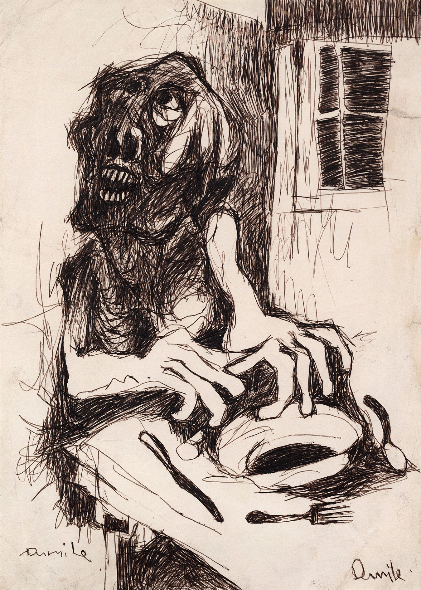 Feni’s first name, Zwelidumile, means ‘a person known all over the country’ and his unflinchingly expressive drawings made an indelible mark on the landscape of South African art. His life almost exactly coincided with the apartheid era, and in his emotionally charged drawings, paintings and sculptures he portrayed South Africans’ lives under the oppressive apartheid regime, earning him the epithet ‘Goya of the townships’.