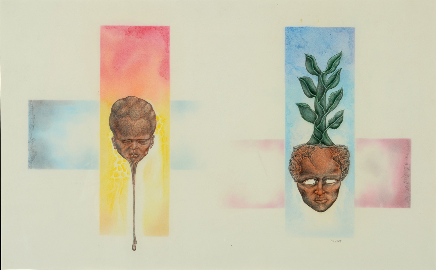 Fikile Patrick Magadlela was celebrated for his contributions to the Black Consciousness movement and his deeply evocative, mystical works. Born in Newclare, Johannesburg, Magadlela demonstrated an early passion for art, drawing on his parents’ walls as a child. Although largely self-taught, he benefited from mentorship and collaboration with renowned artists such as Bill Ainslie, Harold Jeppe, Ezrom Legae and Winston Saoli. His development as an artist was further shaped by the broader Johannesburg art scene.