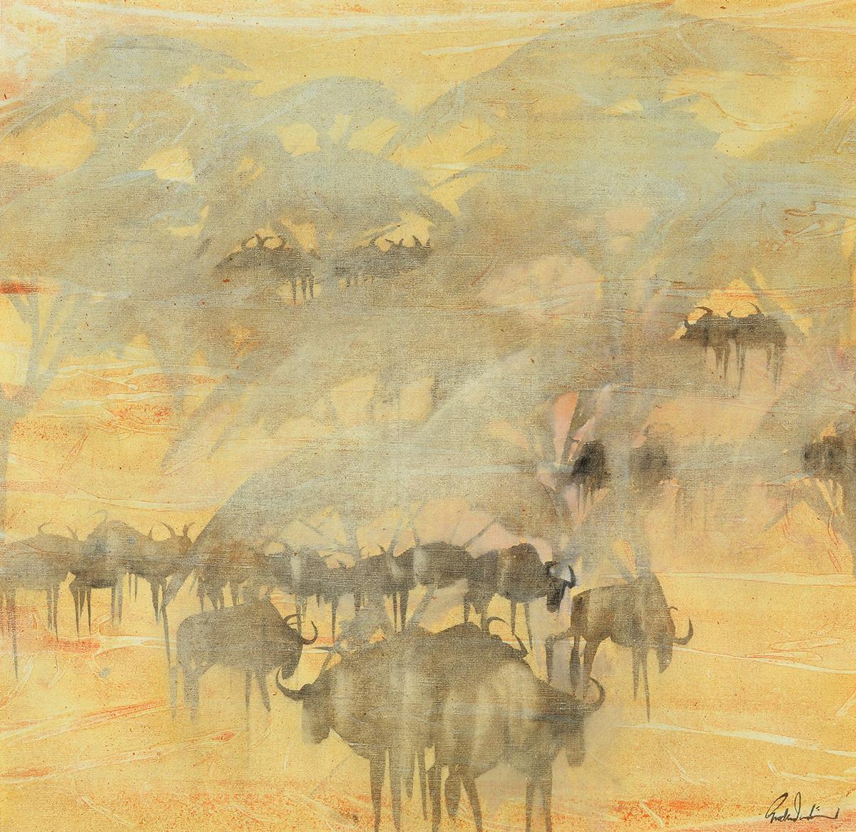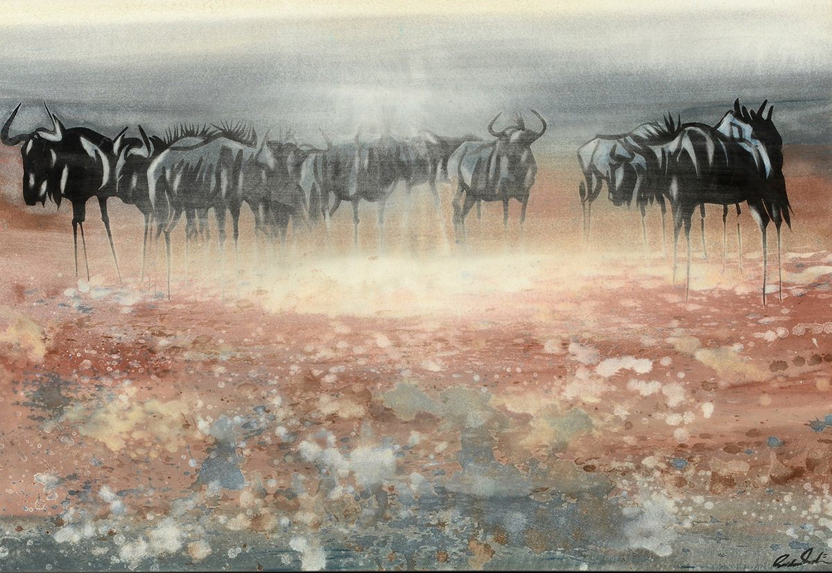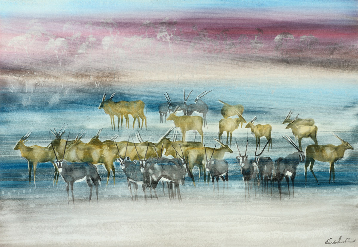 In 1963, Vorster transitioned away from film to become a fulltime artist and presented his inaugural exhibition the following year. His artworks reflect the love of nature that was instilled in him during his childhood. They depict abstracted landscapes that are often filled with bushveld wildlife – herds of antelopes and zebra.