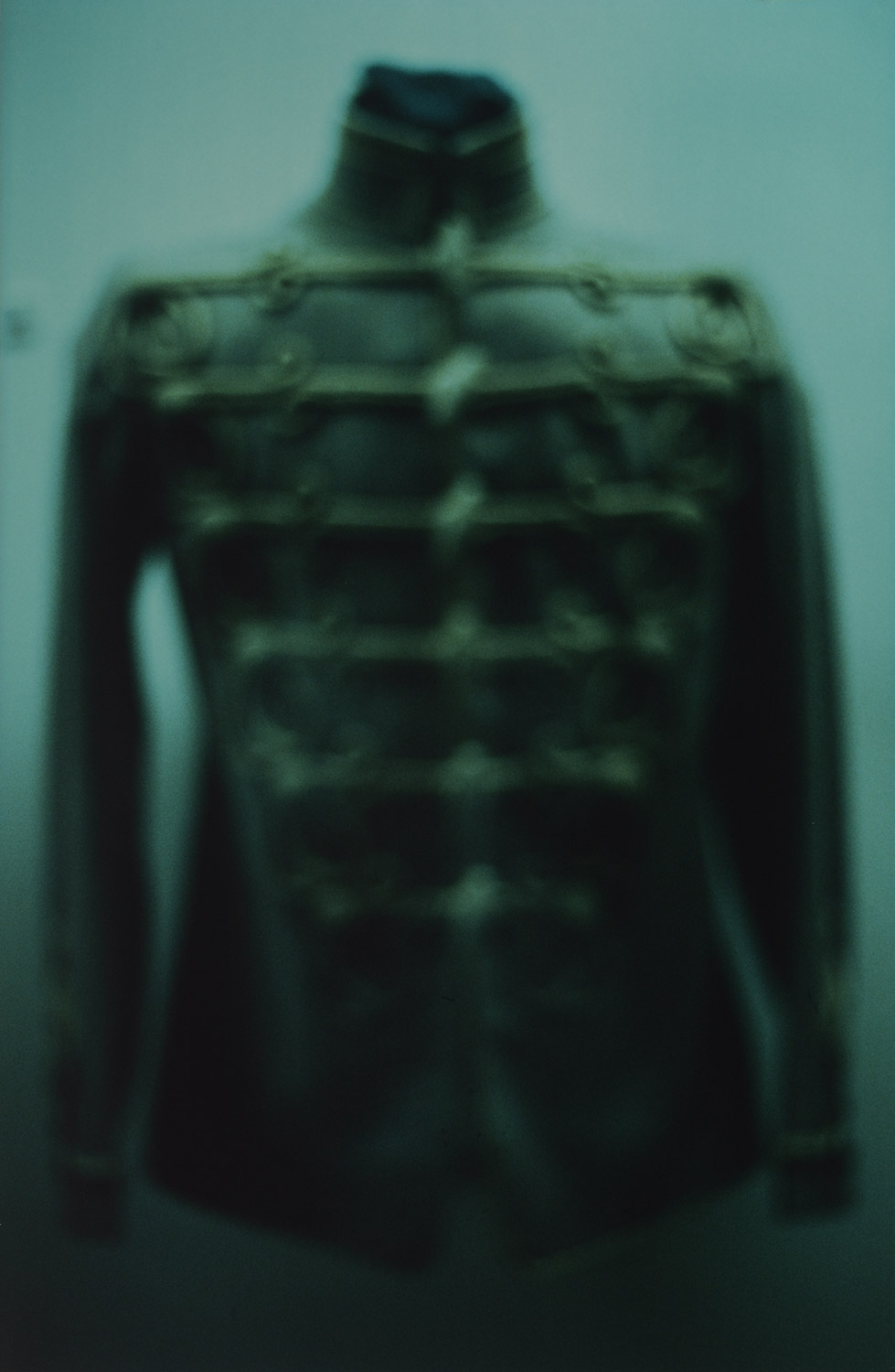 ‘In this series of photographs, Hentie van der Merwe’s sojourn into the field of masculinity, memory and war is a poignant deliberation upon the place of the military uniform in the psyche of war and conflict. Shot at the South African Military History Museum in Johannesburg, Van der Merwe’s life-size photographs hone in on some of the military uniforms worn by South African soldiers during the Anglo-Boer South African War, the two World Wars and the Angolan War. Using the convention of blurring, Van der Merwe’s photographs not only disrupt the authority and power of the ritual dress of war, but also bring into question the place of the military uniform as an archive of memory.