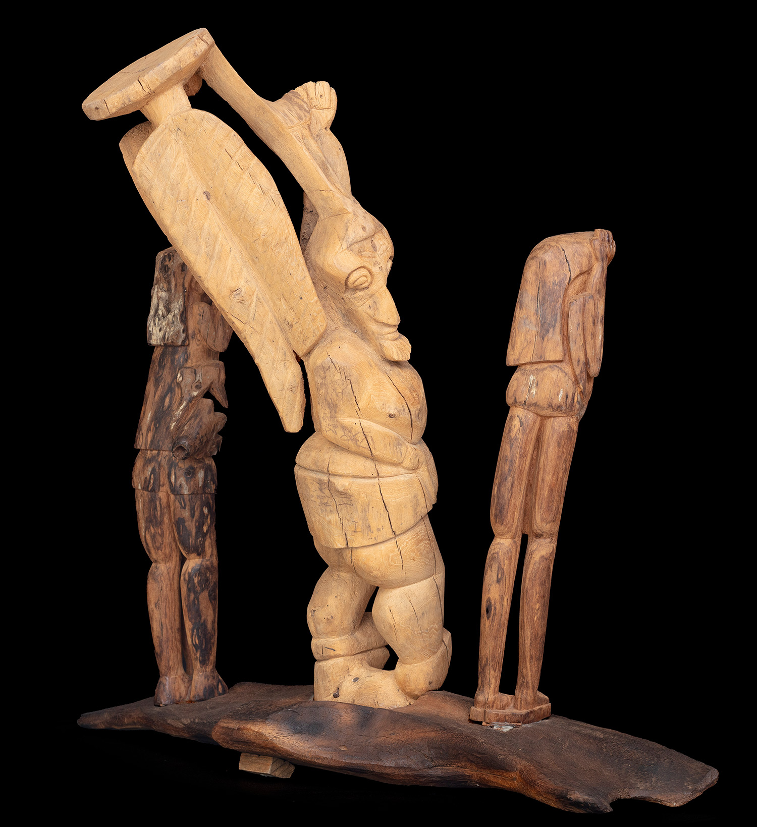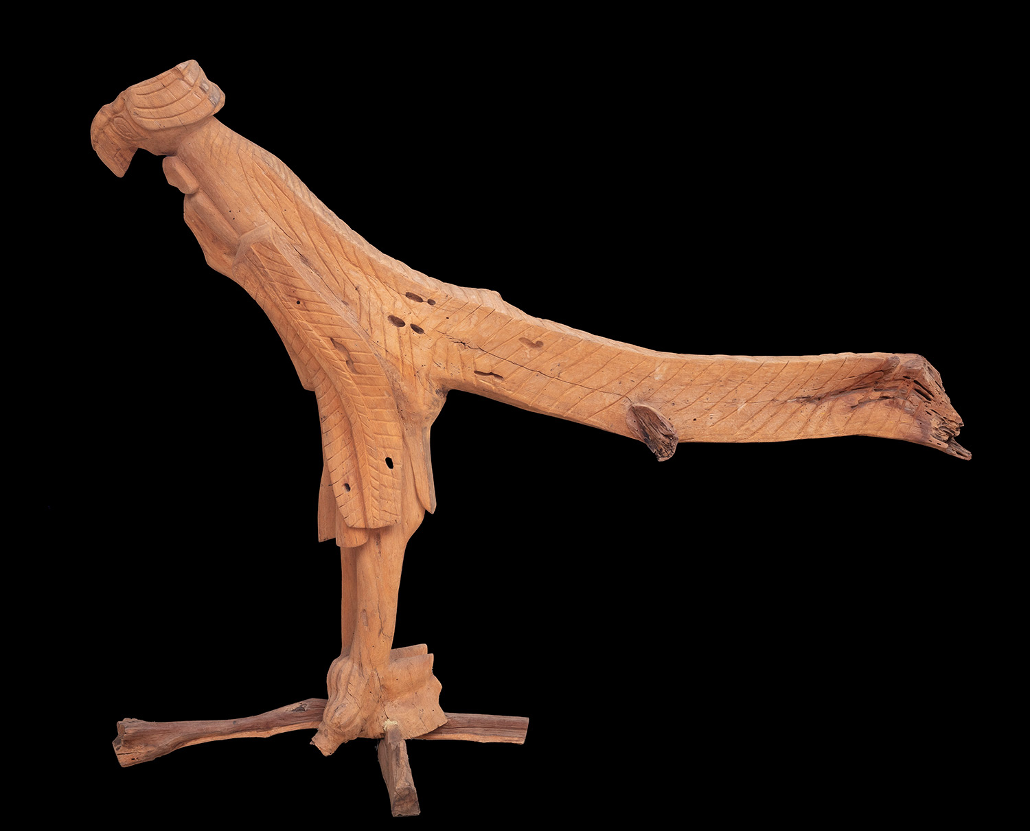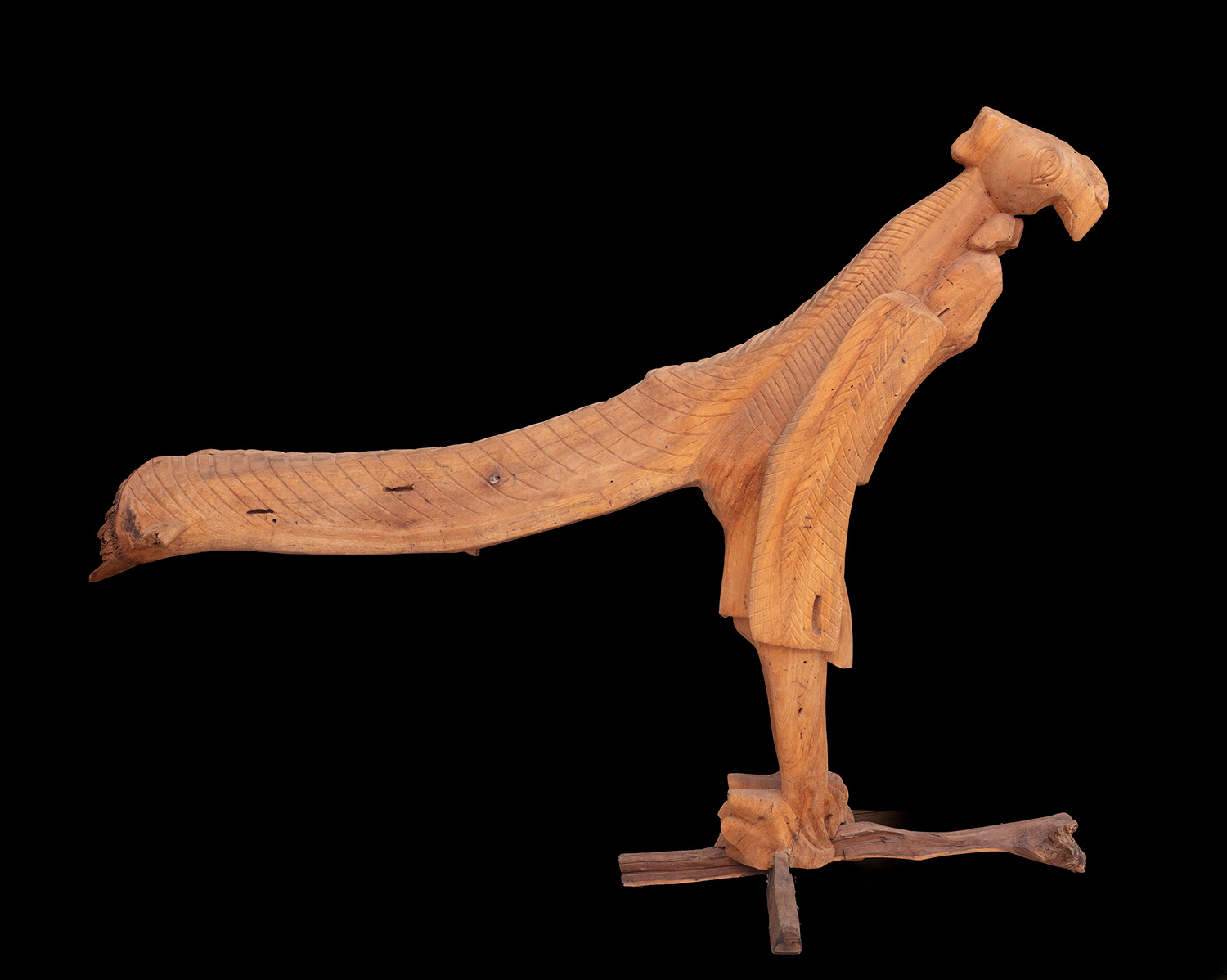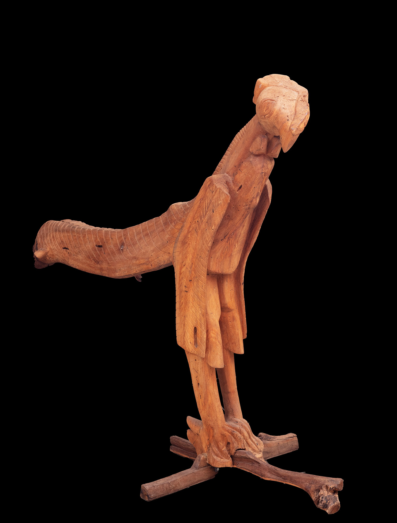 He had no formal training as an artist and learned to carve from his father who made utility items for his community. He spent time as a migrant worker in Johannesburg but returned home after an industrial accident in which he lost a finger. Hlungwani’s earliest extant sculptures date to the 1960s, although it is the work of the 1980s and later that became widely known and appreciated.