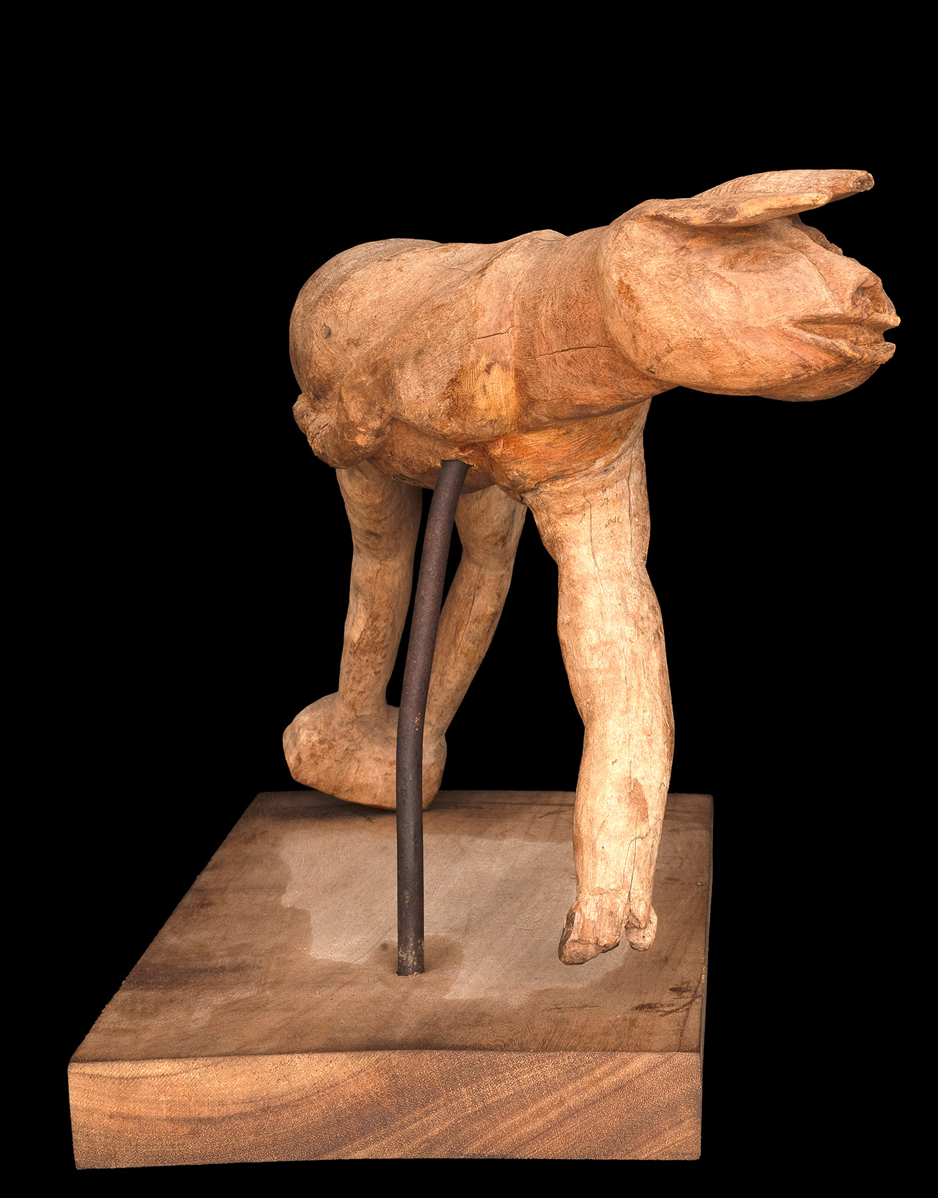 Hlungwani’s work cannot be understood outside of a local African Christian context. He talks of Christ as his mentor and the source of his creativity. He tells of a desperate time in his life when he was severely ill and wanted to commit suicide but was stopped by a vision of God whose legs he saw in the sky. He heard the voice of Christ who gave him three instructions: Hlungwani should start his own church, make carvings and use them in his teaching. He carried out all of these directives and, from that point onwards, much of his work was religious in content and didactic in intent. He continued, throughout his career, to items, such as bowls, walking sticks and thrones, which are remarkable sculptures in their own right.
