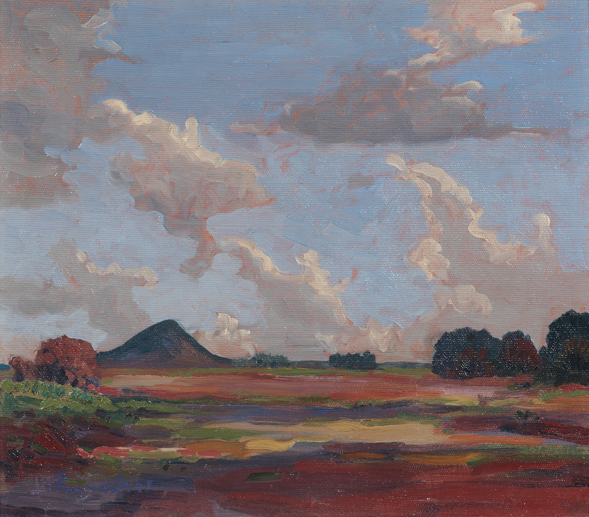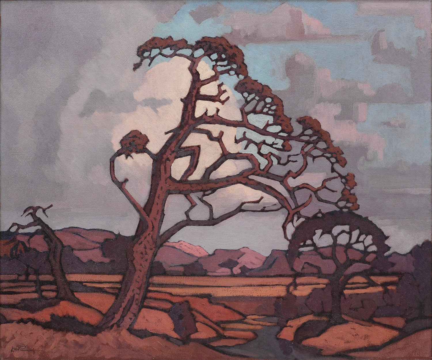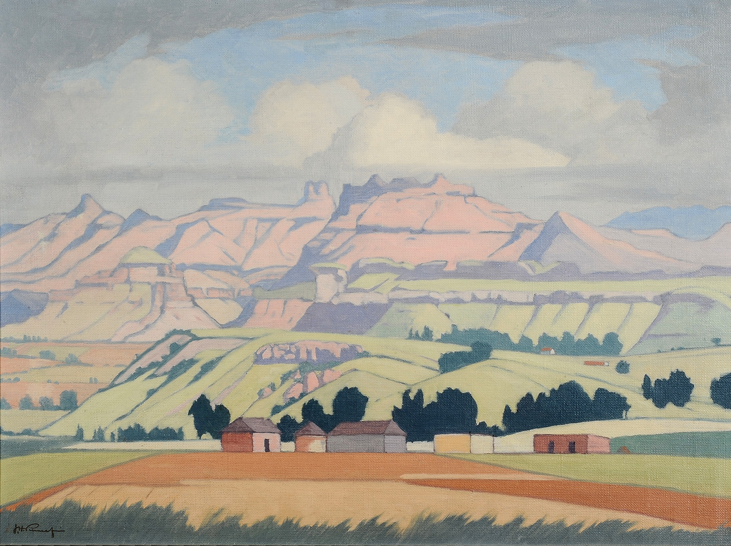 Pierneef’s focus was on monumental aspects of the natural world. He eschewed the soft, painterly style of the Cape artists in favour of a stark and linear vision. In his work of the 1910s and 1920s, he sometimes revealed evidence of Impressionist and Post-Impressionist influence, using an impasto brushstroke which drew attention to the textured surface.