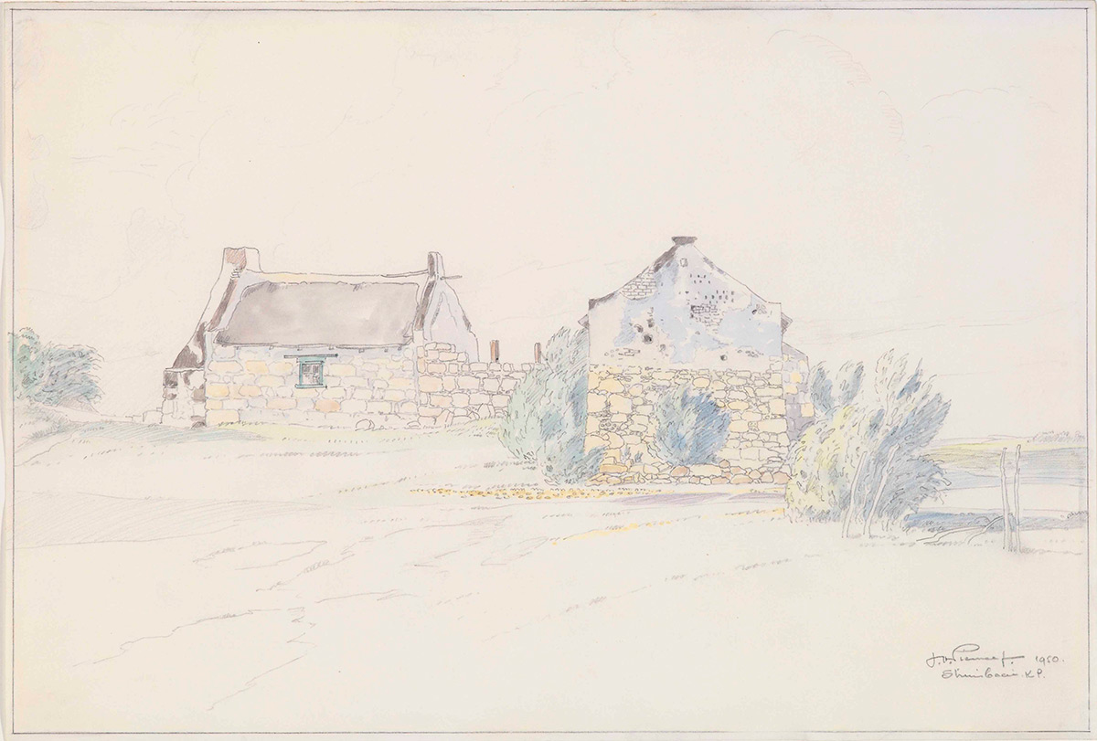 He studied part time at the Rotterdamse Kunsakademie before returning to South Africa at the age of 18. Back in Pretoria, he crossed paths with other already established artists like Anton van Wouw, Hugo Naude and Frans Oerder, as well as the Irish artist George Smithard who played an important role in teaching him graphic mediums, like etching and linocuts. Pierneef exhibited his work for the first time as part of a popular group exhibition with Van Wouw and Naude.