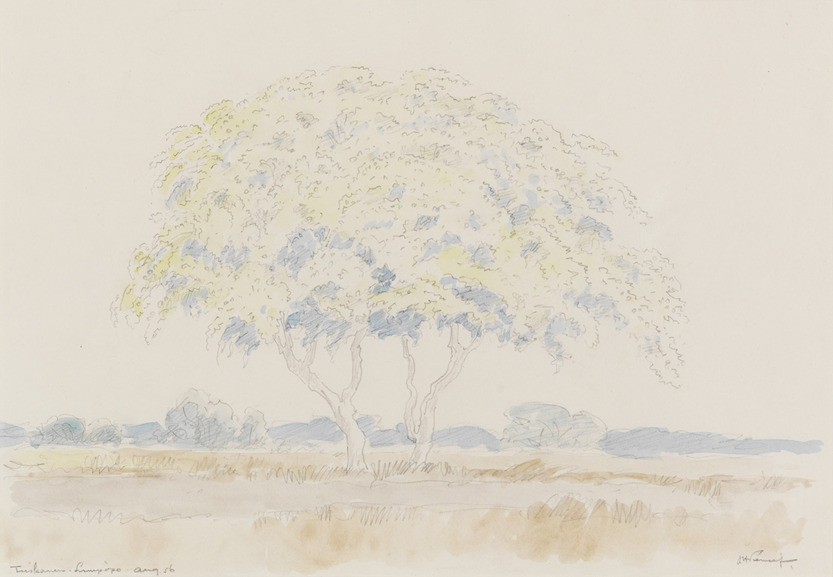 In 1925, the couple travelled to Europe, where Pierneef worked hard to promote himself and to learn about the different art movements. He also had an exhibition in the Netherlands. The couple returned on a ship which sailed along the East Coast of Africa and Pierneef sketched the ports where they docked.