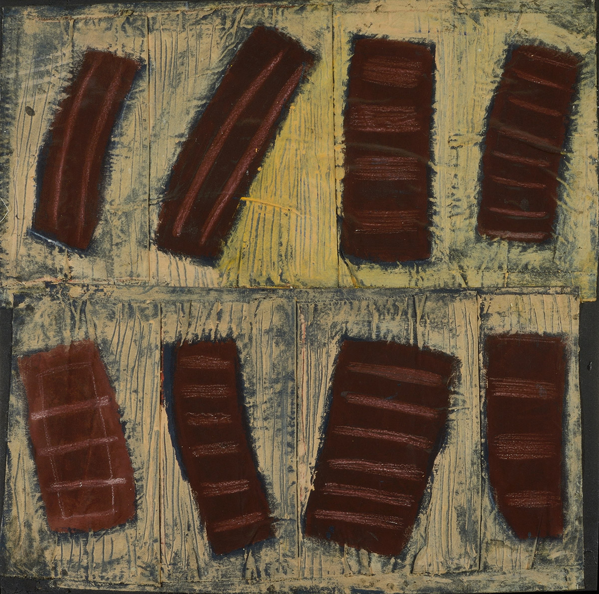 As a weaver and spinner, she explored the dynamics of colour mixing, textures and surfaces. Although she is no longer involved in these trades or the teaching of them, she applies the same sensibility to her image making, exploring surfaces with colour and mark and, as a painter, uses various tools to build her paintings.