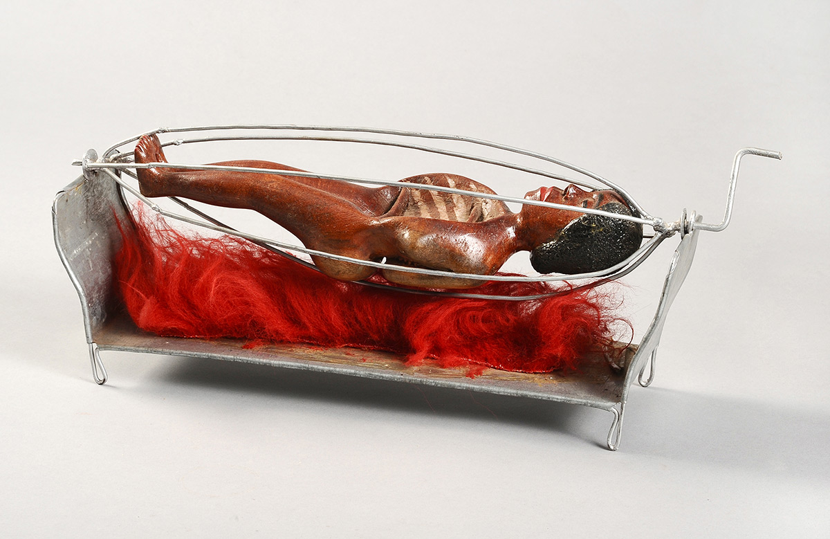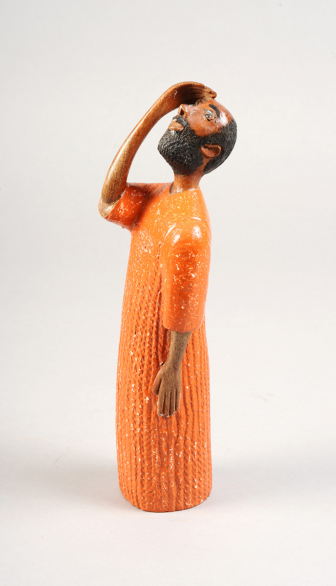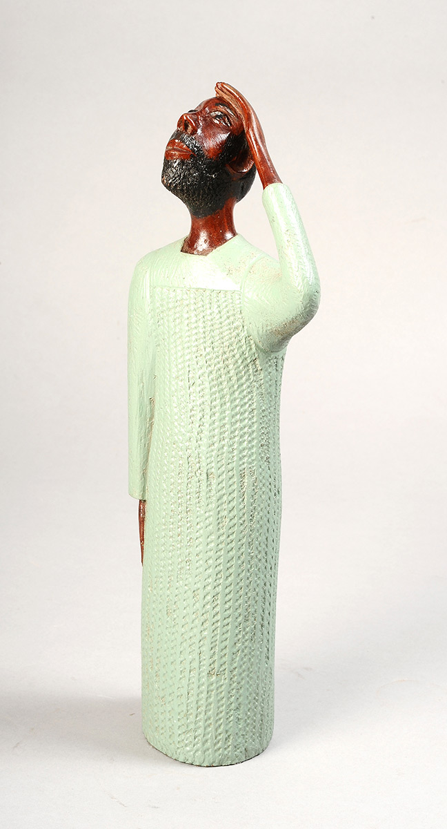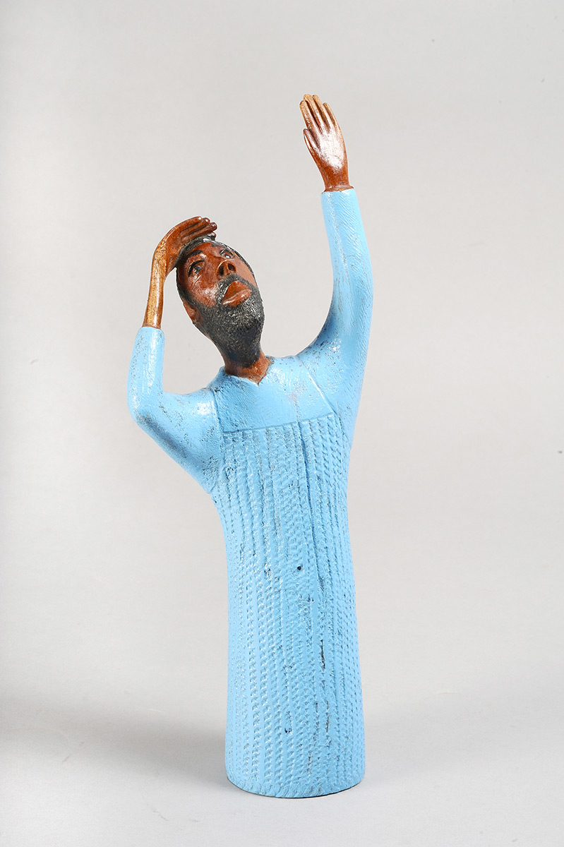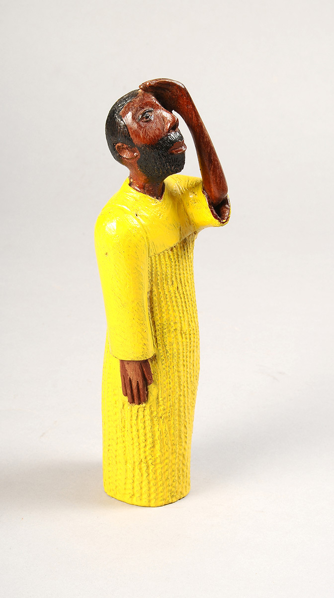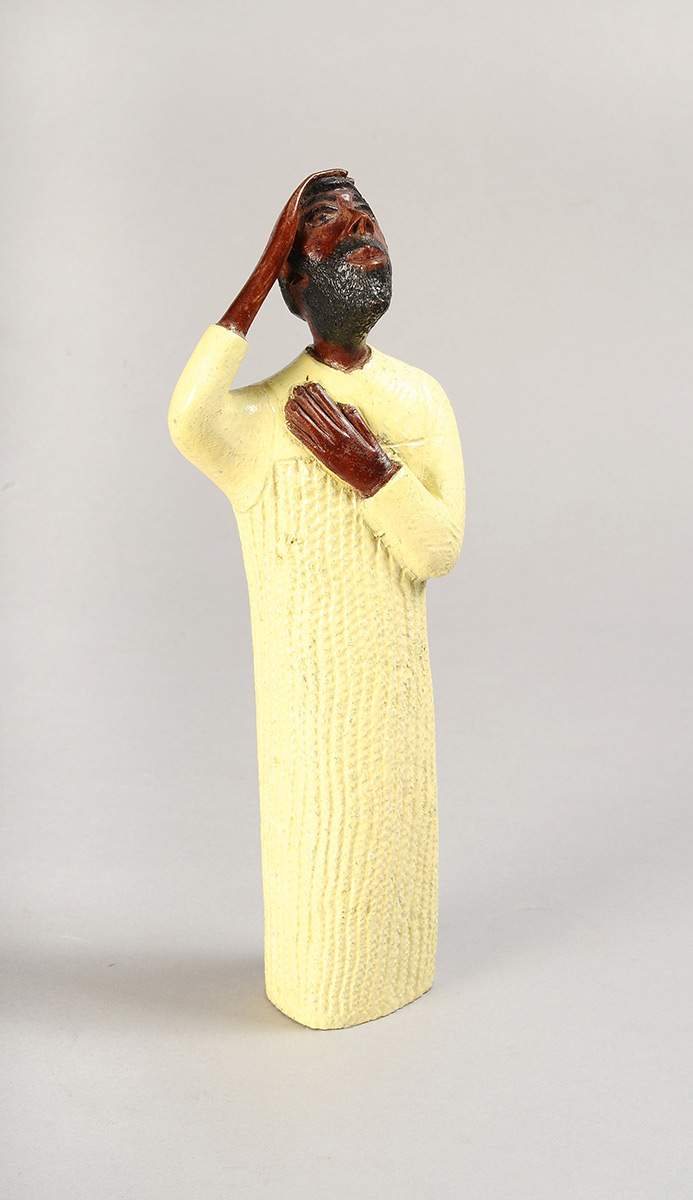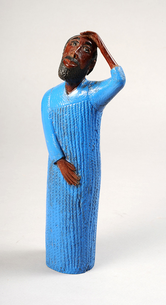 His painted wooden sculptures were inspired by the Bible and developed further through his own visions. Deeply concerned with the future of humankind, Segogela’s commitment to the anti-apartheid movement and his membership, from 1954 onwards, in the Church of Five Missions, influenced his work considerably. His goal, ‘to save the world from violence and horror’, started in the late 1980s with the work ‘Satan Fresh Meat Market’, with its figures of angels and demons.