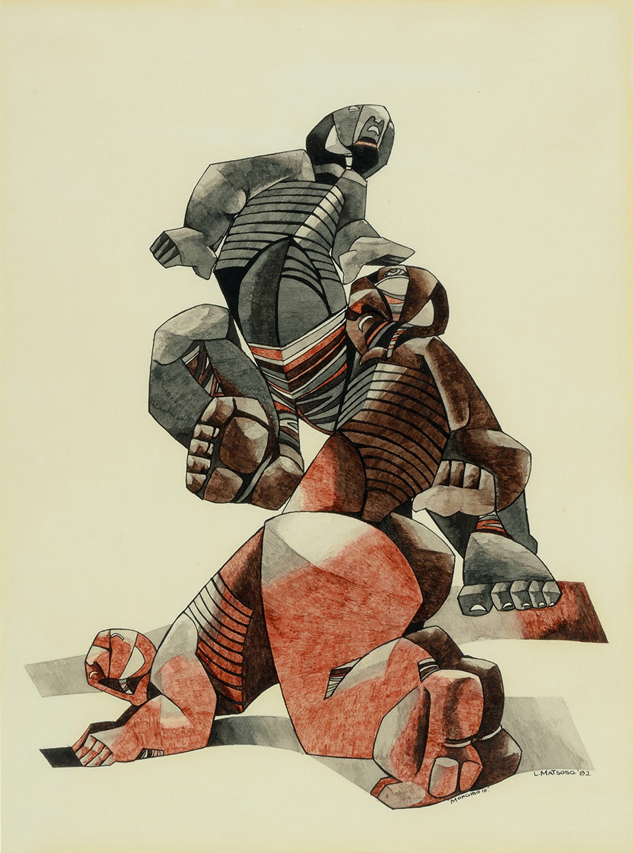 Leonard Tshehla Mohapi Matsoso was born in Pimville, Soweto. From 1962 to 1970, while still at school, he studied at the Jubilee Art Centre under Cecil Skotnes, Sydney Kumalo, Bill Hart and Ezrom Legae. In 1972, he studied at the Bill Ainslie Studios and travelled to France, England and Italy.