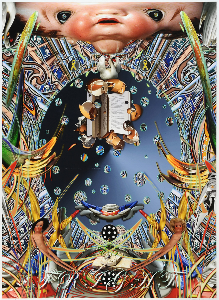 He works with a broad array of media – ranging from plastics, metals, or trinkets of everyday life – to make paintings, drawings and sculptures. He also works in video.