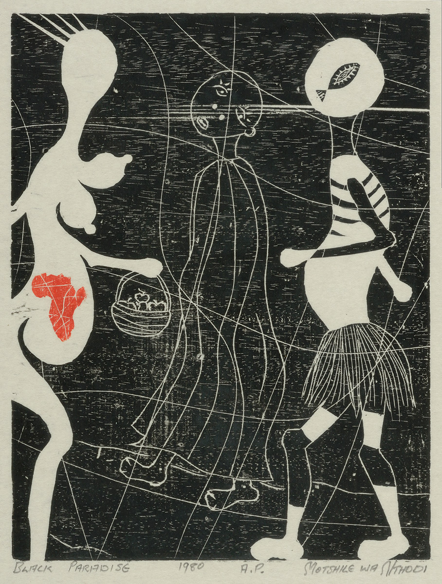 Motshile’s work integrates Ndebele, Shangaan and Napadi cultural traditions and his use of colour is often symbolic – black symbolising life; red, the ancestors; and yellow, the celestial bodies.