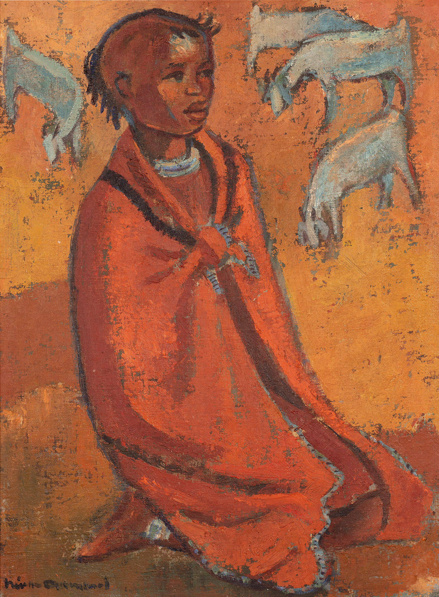 Nerine Desmond was born in Constantia, Cape Town, the daughter of Nicolaas Johannes Smith, an Afrikaner clergyman, and Ivy Desmond. She studied at London’s Central School of Art in 1938, where she learned graphic-printing techniques; but was otherwise largely self-taught. Desmond was politically conservative, and once refused the use of one of her works on the cover of a novel by Nadine Gordimer [who went on to win the Nobel Prize for Literature], stating that Gordimer was ‘not a loyal South African’.