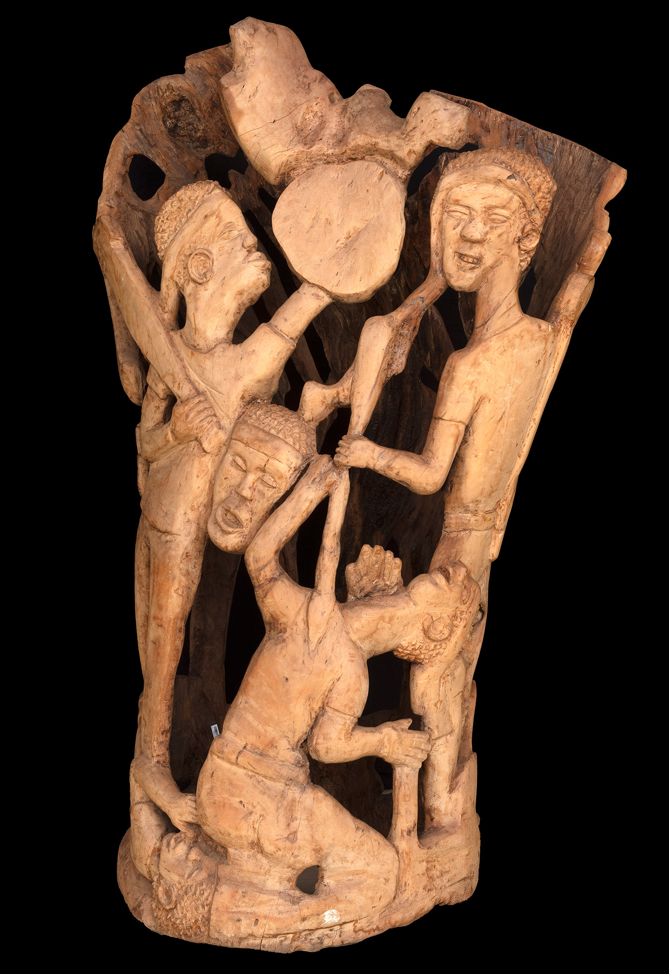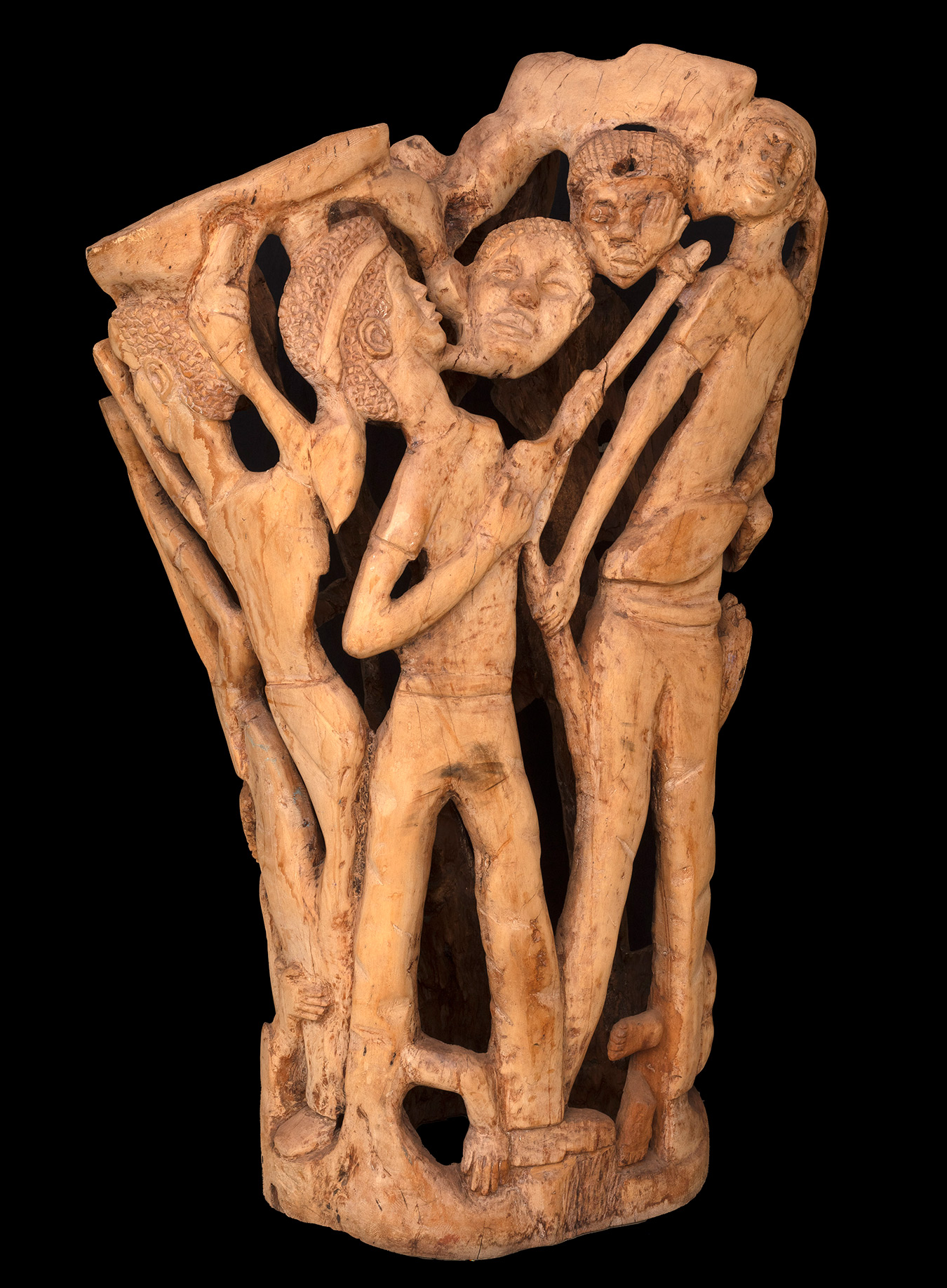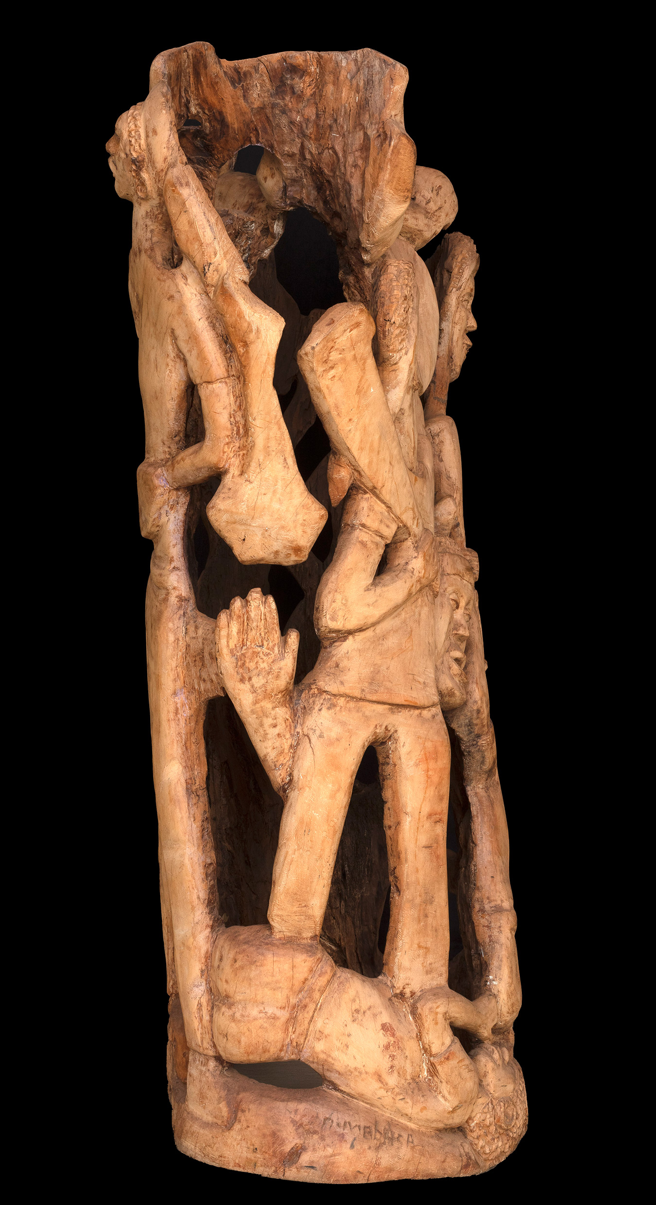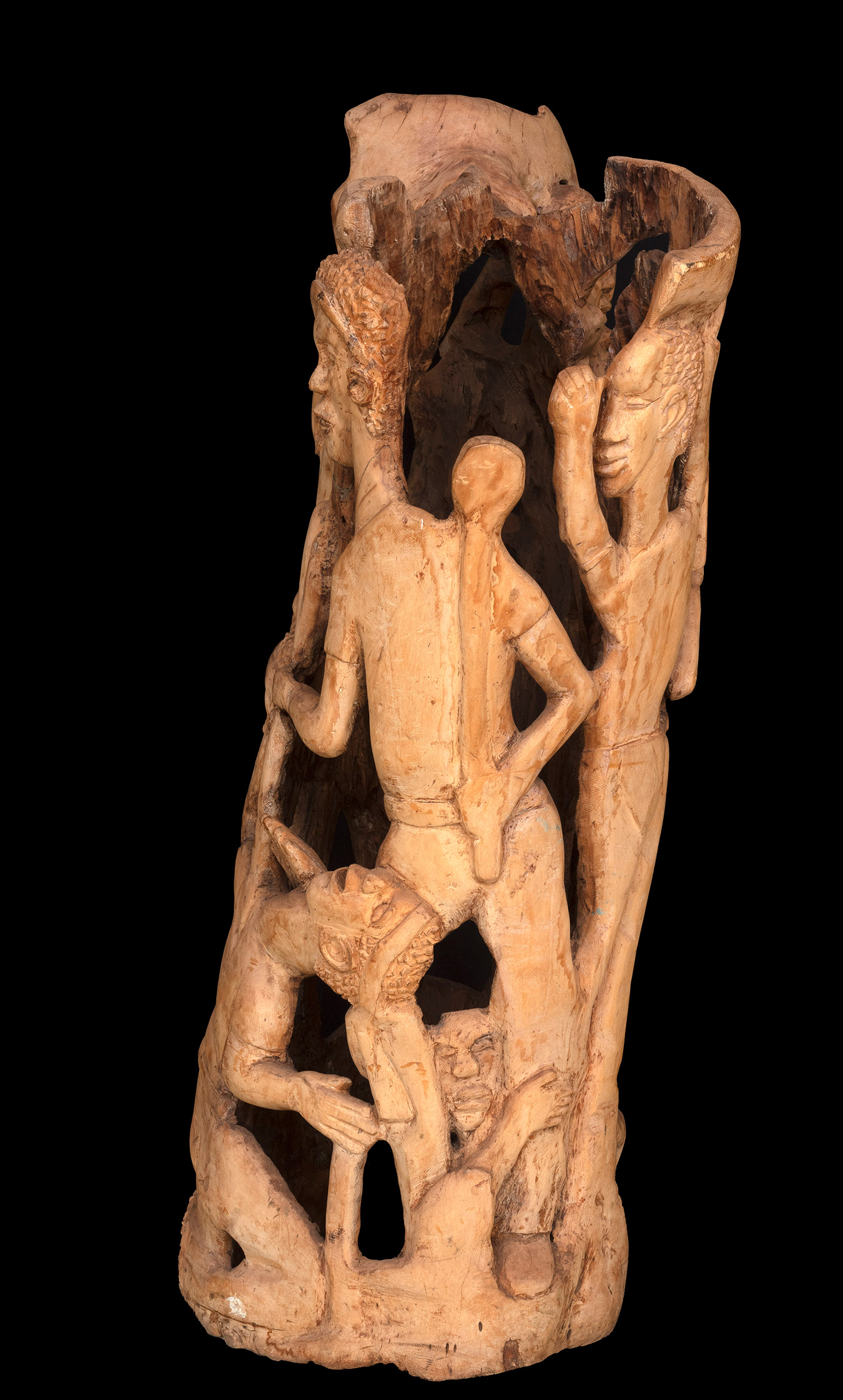 Mabasa’s career took a transformative turn in the 1980s when she ventured into wood carving – a medium traditionally dominated by men. Her decision to work with wood was both ground-breaking and subversive, challenging gender norms within her community. Her wooden pieces are sculptural renderings of dreams that combine traditional folklore with personal experience. Mabasa incorporates a blend of mythological elements and real-life experiences in her sculptures, as seen in her recurring crocodile motifs, which stem from personal encounters and folklore.