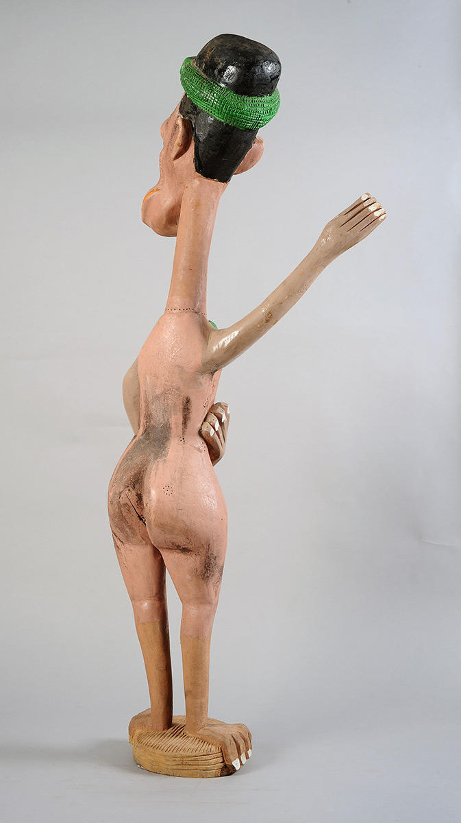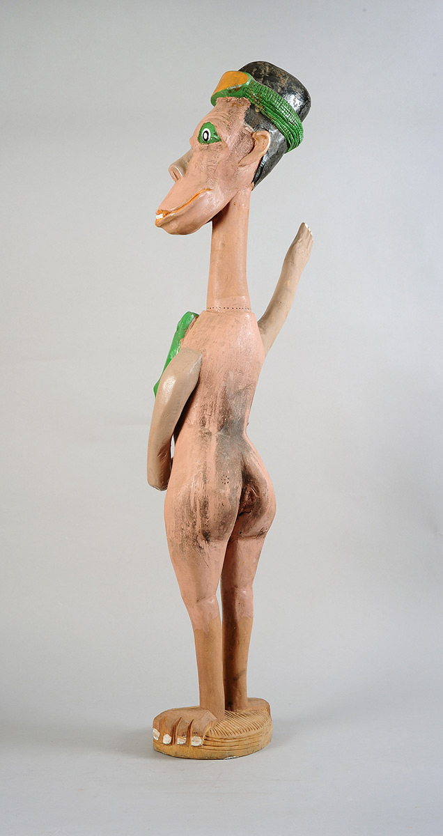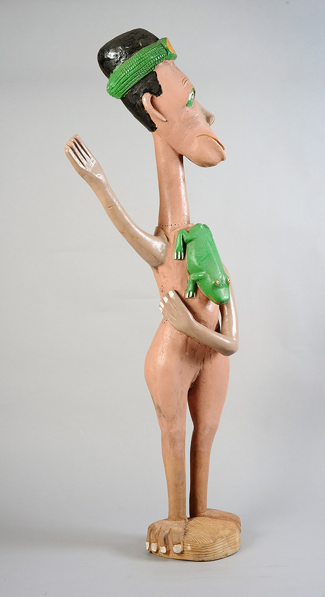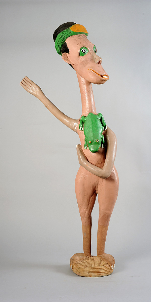 Rikhotso tapped into Tsonga folklore, myths and legends to create his human, animal and otherworldly figures, with their exaggerated features and garish colours. He embellished his creatures with earrings and animal fur, like the billy-goat beards of the Malakalaka, the long-legged tortoises with their outstretched necks. He often added quirky details, like nail polish and bright white buck-teeth, to enhance the magical storytelling element that is so prominent in his work.