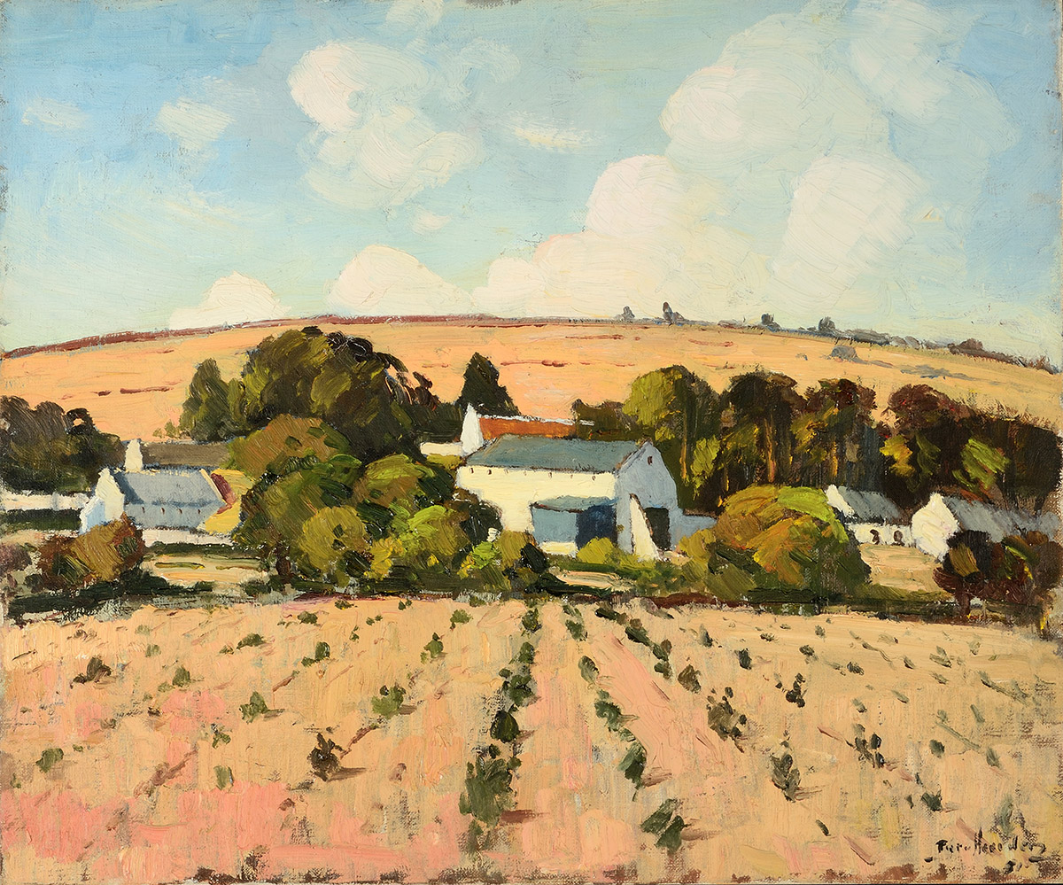 The death of Hugo Naudé’s wife served as a catalyst for Van Heerden’s move to Worcester, South Africa in 1939. He continued to study under Naudé for the following two years, until the death of Naudé in 1941. Naudé’s tutelage is evident in the landscapes, figures and portraits that Piet van Heerden painted.