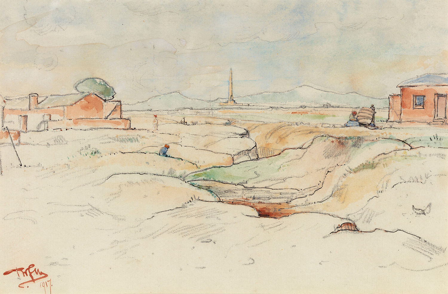 Wenning and his family lived in a wood and iron cottage in Rietfontein on the outskirts of Pretoria. He sold books, stationery, prints and artist’s materials, earning £17 a month. Unable to afford the materials for painting, he drew incessantly and, through diligent saving, eventually imported a second-hand etching press from the Netherlands, with which he became a pioneer in etching in South Africa. It was also at Rietfontein that Wenning began experimenting with oils.
