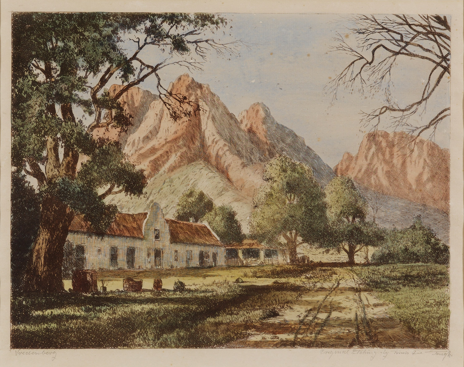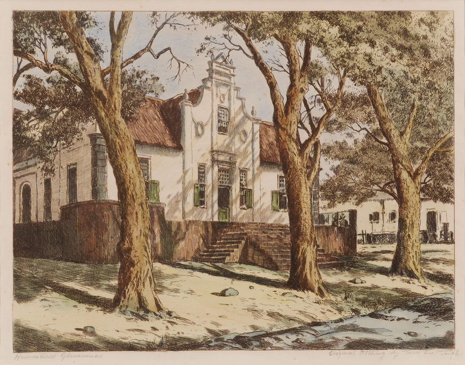 He arrived in South Africa in 1921, practising a sober style within the Dutch tradition. The light and landscape of South Africa soon caused him to abandon his muted palette in favour of more saturated colours. His formulaic approach to painting Cape landscapes with gabled farmhouses created such a demand that he abandoned his considered brushwork in favour of a broader palette-knife technique. His etchings sold in the hundreds through his dealer Louis Woolf.