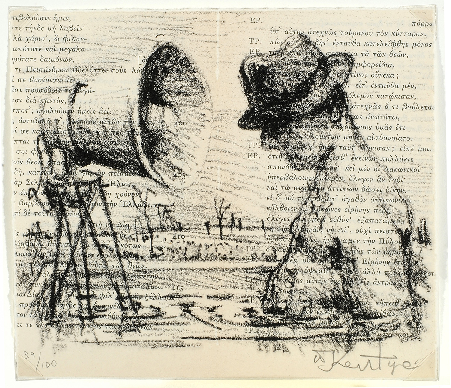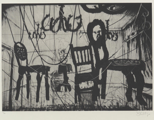 This lithograph was made along with the animated film Stereoscope, the eighth in Kentridge’s decade-long series featuring Soho Eckstein, the archetypal white Johannesburg businessman of the post-apartheid era and an alter ego of the artist. The role of drawings in Kentridge’s oeuvre has developed over time. Initially created in service to his films, they gradually took on a more independent life, and in 1992, the artist began showing them separately.