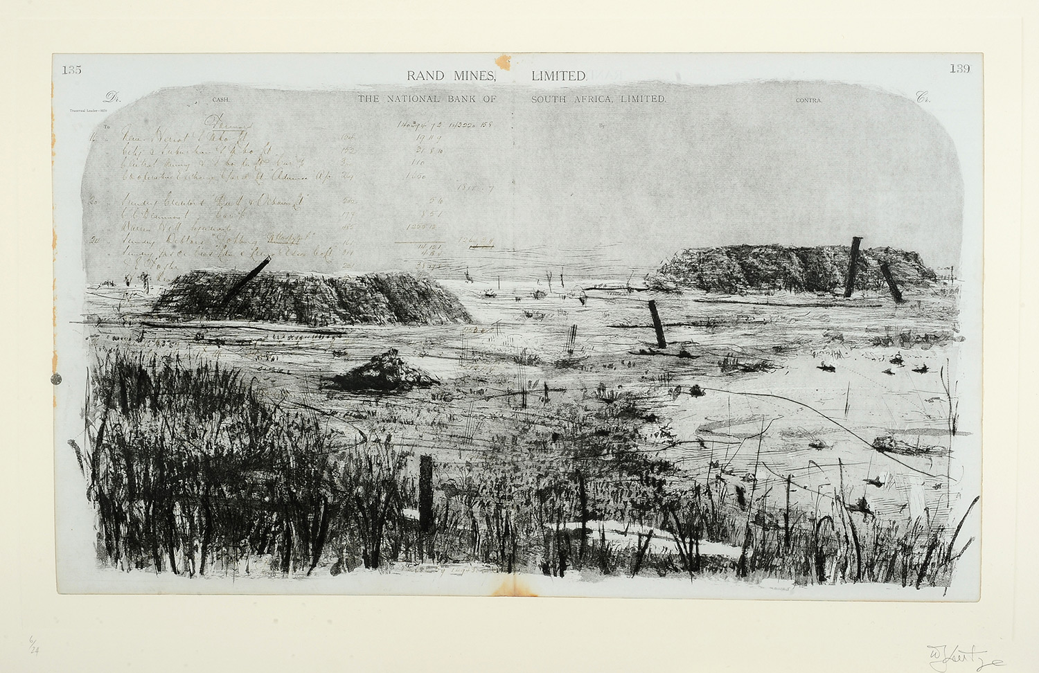 This print was created in conjunction with the film, Zeno Writing, which was made in relation to Confessions of Zeno, a theatrical multimedia performance produced for Documenta 11. Confessions of Zeno was a collaboration with The Handspring Puppet Company, Kevin Volans, The Duke Quartet and Dawid Minnaar.